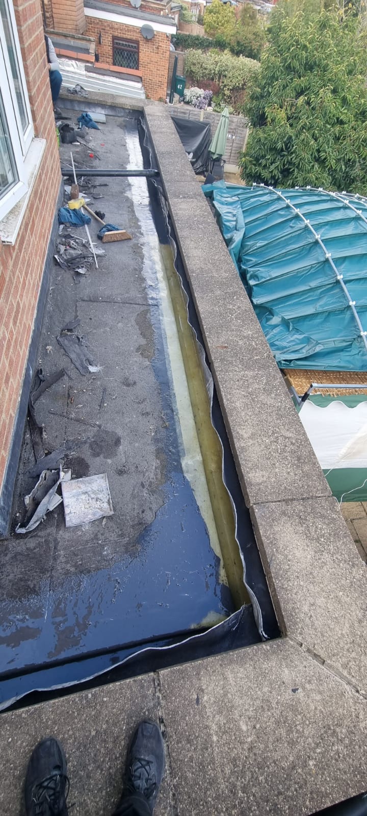 Greenbuild recently completed the installation of a durable fibreglass (GRP) flat roof and new guttering system on a residential property in HA8. The existing roof covering was fully stripped back and replaced with a seamless, weatherproof GRP system designed for long-term performance and low maintenance.